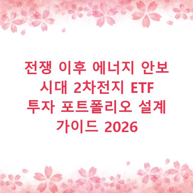 전쟁 이후 에너지 안보 시대 2차전지 ETF 투자 포트폴리오 설계 가이드 2026