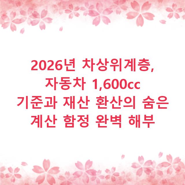 1. 2026년 차상위계층 선정은 ‘소득’보다 ‘재산(특히 주택)과 자동차의 소득환산액’이 더 중요한 결정 변수가 될 수 있습니다. 공시가격 3년 평균 계산법 때문에 집값이 하락해도 불리해지는 역설이 발생합니다.