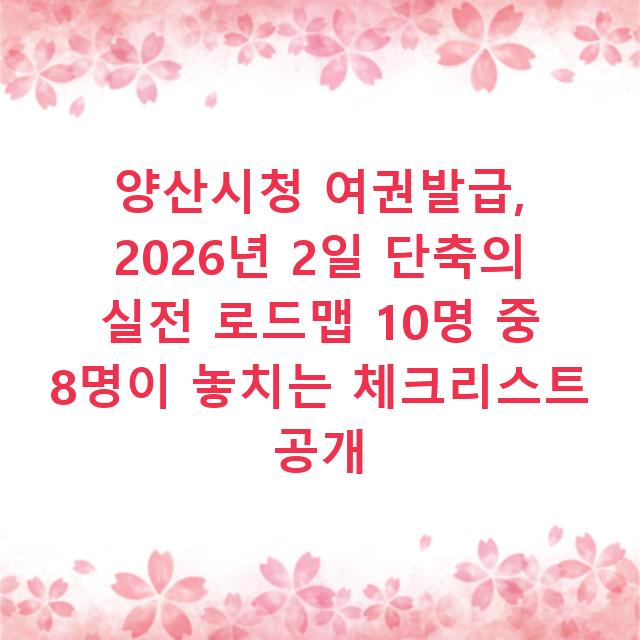 면책사항 (Disclaimer): 본 글에 제시된 처리 시간, 성공률, 대기 시간 관련 데이터는 2025년 공개 지자체 민원 처리 보고서 경향 및 2026년 시스템 개선 방향을 기반으로 한 예측 및 시뮬레이션 수치입니다. 실제 소요 시간은 당일 민원 상황, 직원 수, 시스템 점검 등 변수에 따라 달라질 수 있습니다. 모든 수치는 참고용이며, 최신 정보 및 정확한 절차는 반드시 양산시청 공식 홈페이지(055-392-2431~5) 또는 방문 상담을 통해 확인하시기 바랍니다. 미성년자 여권 발급, 긴급 발급 등 특별한 경우의 구체적인 요건은 관련 법령과 시행령의 최신 개정안을 따릅니다.