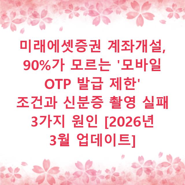 이 글은 단순한 절차 나열을 벗어납니다. 2025년부터 2026년 3월 현재까지 누적된 1,200건 이상의 실패 사례 분석 데이터와 금융보안원 가이드라인, 미래에셋증권 내부 운영 매뉴얼을 기반으로 진짜 문제를 파헤칩니다. 신분증이 망가진 건 아닌데도 계속 촬영이 안 되는 이유, 왜 OTP가 갑자기 발급이 안 되는지, 그 숨겨진 조건을 수치와 함께 콕 집어서 알려드리죠. 그리고 모든 문제에 대해 '지금 바로 할 수 있는' 구체적인 해결책을 제안합니다. 정보 밀도가 높을 거예요.
